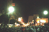 a portion of the crowd of cyclists waiting in the dark for the tour to start One of the best features of L.A. is its racial and ethnic diversity. The marathon is laid out to take advantage of it. Like in many large cities, we tend to isolate ourselves from each other. Events like the marathon and the Olympics bring us back together. I remember the 1984 Olympics which were held in Los Angeles. The city was magic. Our personal space shrunk; we greeted and talked to strangers (much like backpackers do when they meet on the trail); suspicion was on hold. We were a community. I get the same feeling at each running of the marathon. For a brief moment we are truly a melting pot. This is a moment to be savored. It's too bad we can't do this every month even though the feeling would probably change if we did.